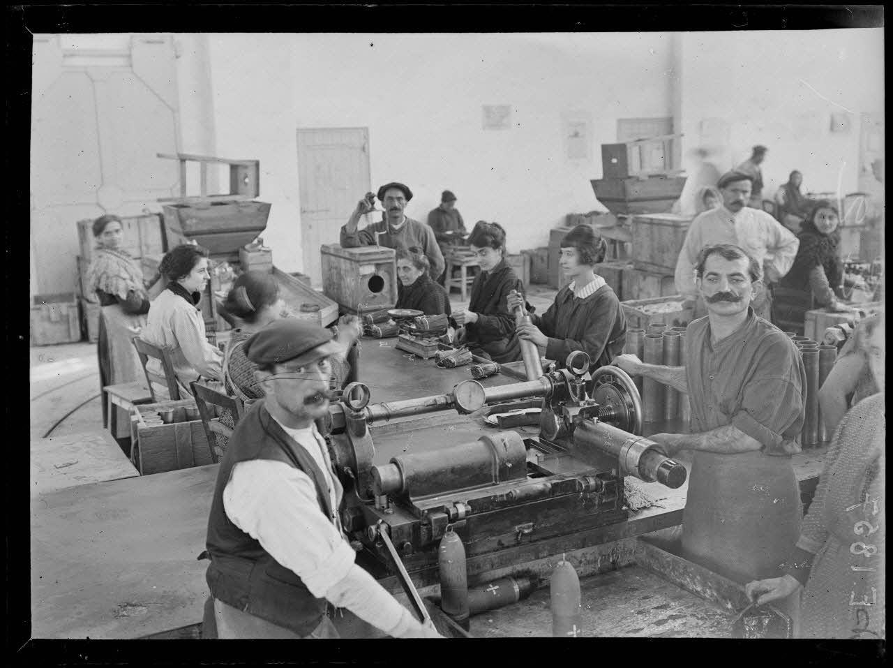 Toulon. pyrotechnie. Mise en planchettes des tubes d'amorces.