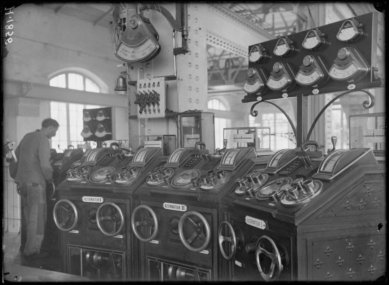 Toulon. Centrale électrique, pupitres alterneurs et ses convertisseurs synchrones. [légende d'origine]