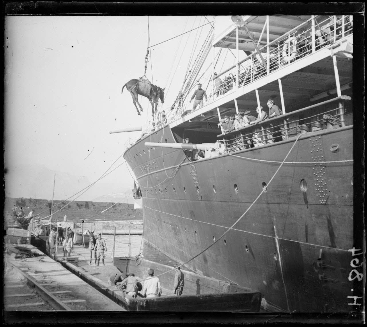 Toulon. Embarquement des mulets à bord de la Provence. [légende d'origine]