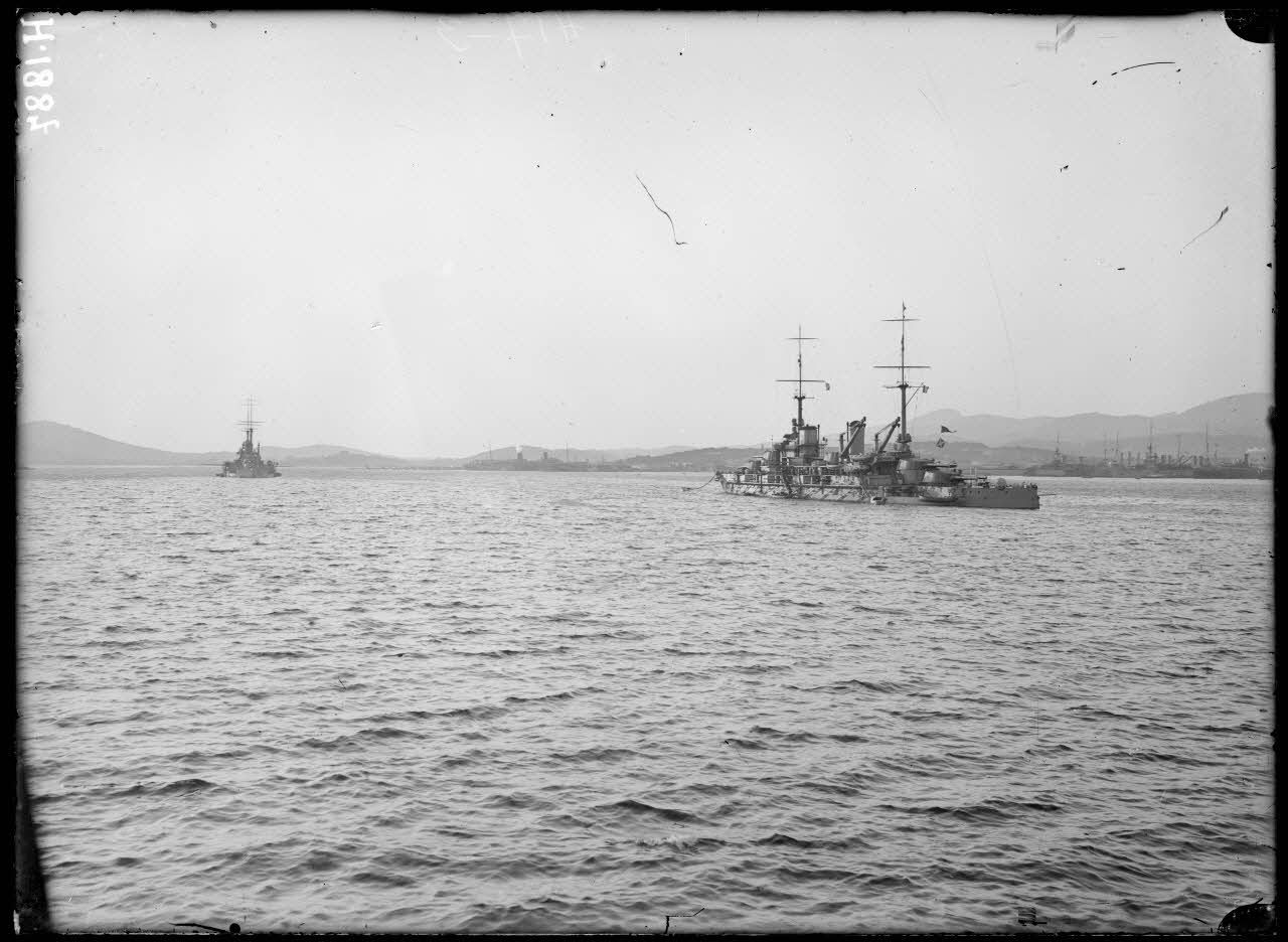 Toulon. La Bretagne et le Courbet sur rade. [légende d'origine]