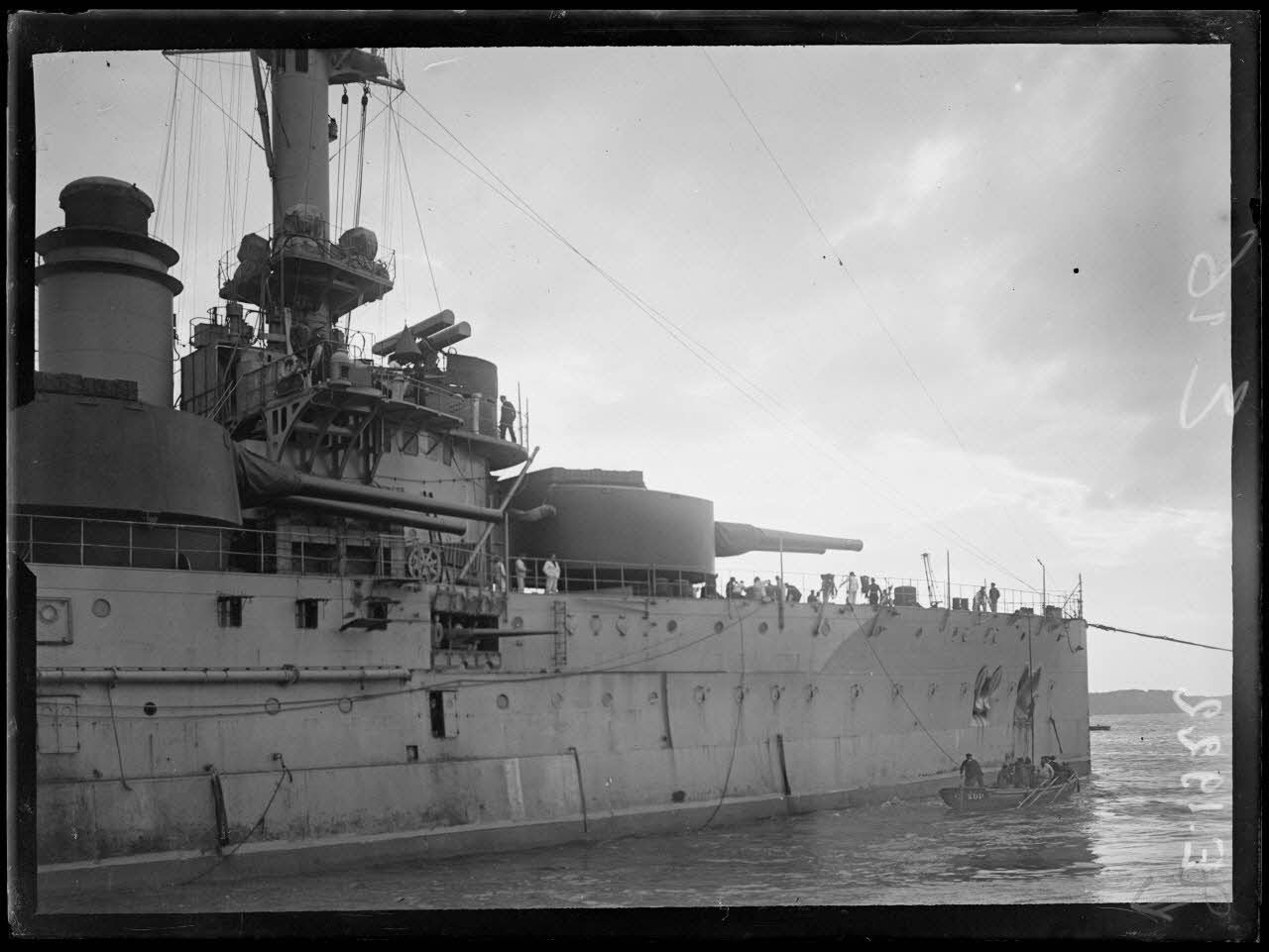 Toulon. Le cuirassé Danton allant faire des essais de tir. [légende d'origine]