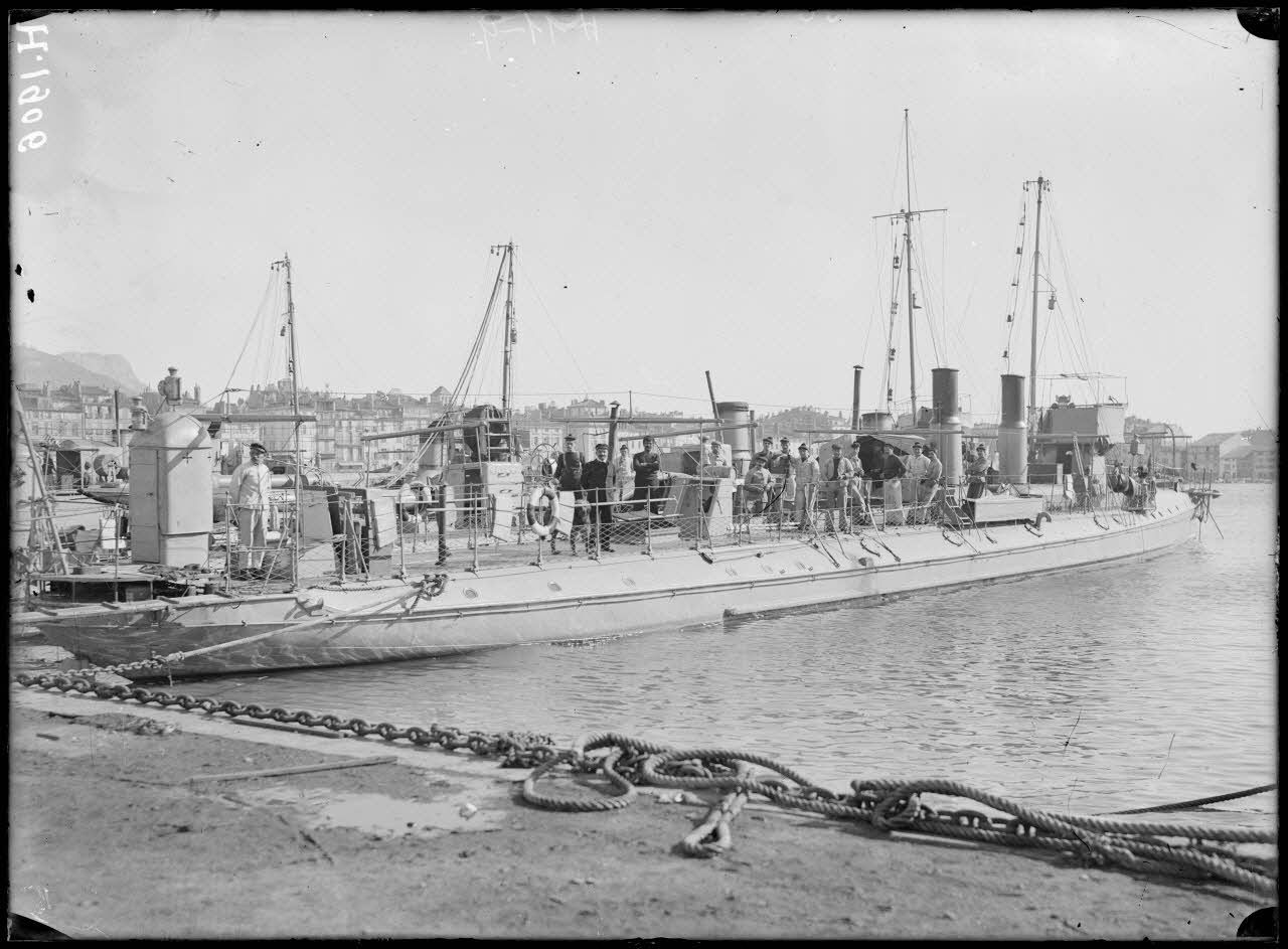 Dans le port, l'"Aréthuse" et le "Bretagne" ont accosté. Le 1er RIC (régiment d'infanterie coloniale) s'apprête à embarquer à bord du "Lutetia". Des marins sont à la corvée de lavage sur les torpilleurs "Chevalie" et "Orage". Les torpilleurs "Commandant Rivière" et "Epée" sont en cale sèche.