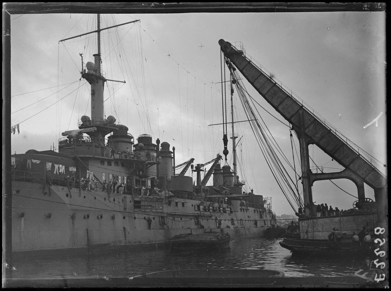 Toulon. Vue de la tourelle enlevée par la grue pour le Danton.