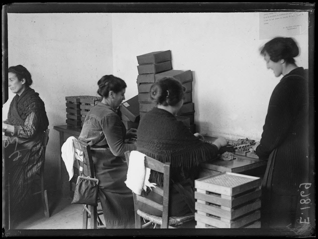 Toulon. pyrotechnie. Mise en planchettes des amorces pour fusées. [légende d'origine]