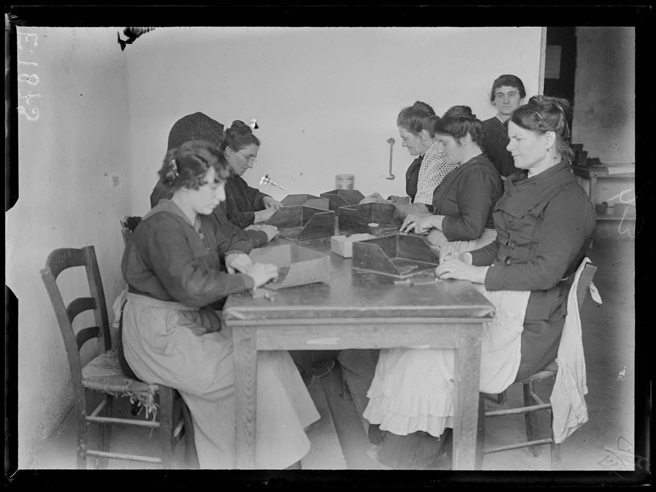 Toulon. pyrotechnie. Mise en planchettes des tubes d'amorces. [légende d'origine]