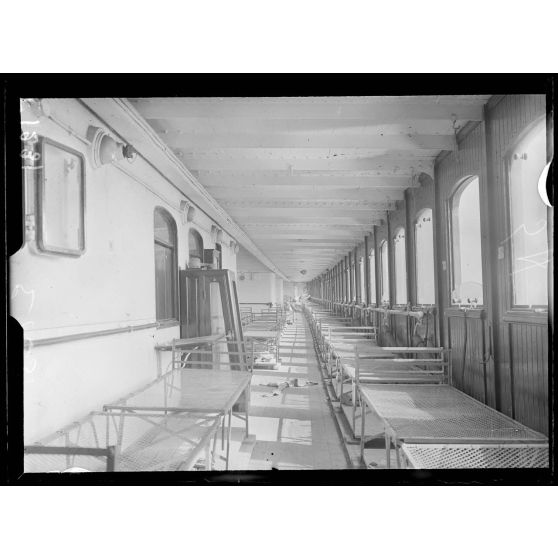 Toulon. A bord du navire hôpital La France. Chambre de malades.