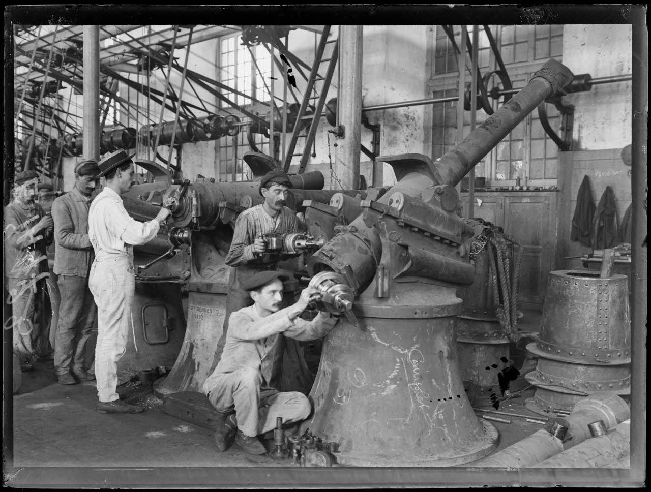Toulon. Fabrication d'obus de 220. Vue d'ensemble de l'atelier des tours.