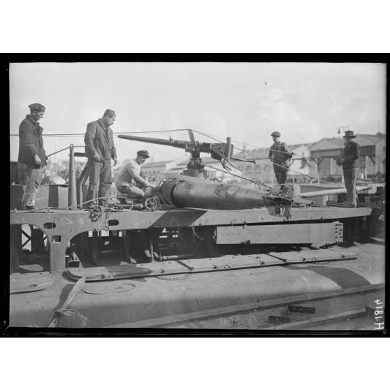Toulon. L'Atalante. Mise à bord d'une torpille.