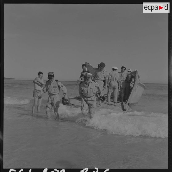 Sur le tournage du film Le jour le plus long. Entraînement des marins au débarquement.