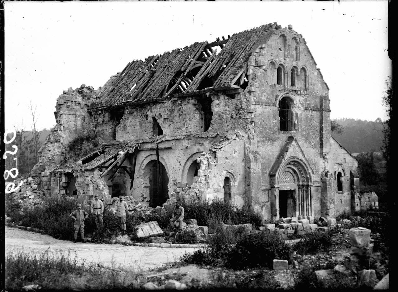 -Vue générale de l'église de Tracy-le-Val, en grande partie détruite (pl.89).
