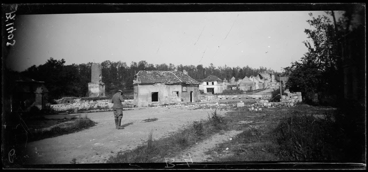Tracy-le-Val : entrée du village. Le village occupé par nous, le cimetière par les allemands.