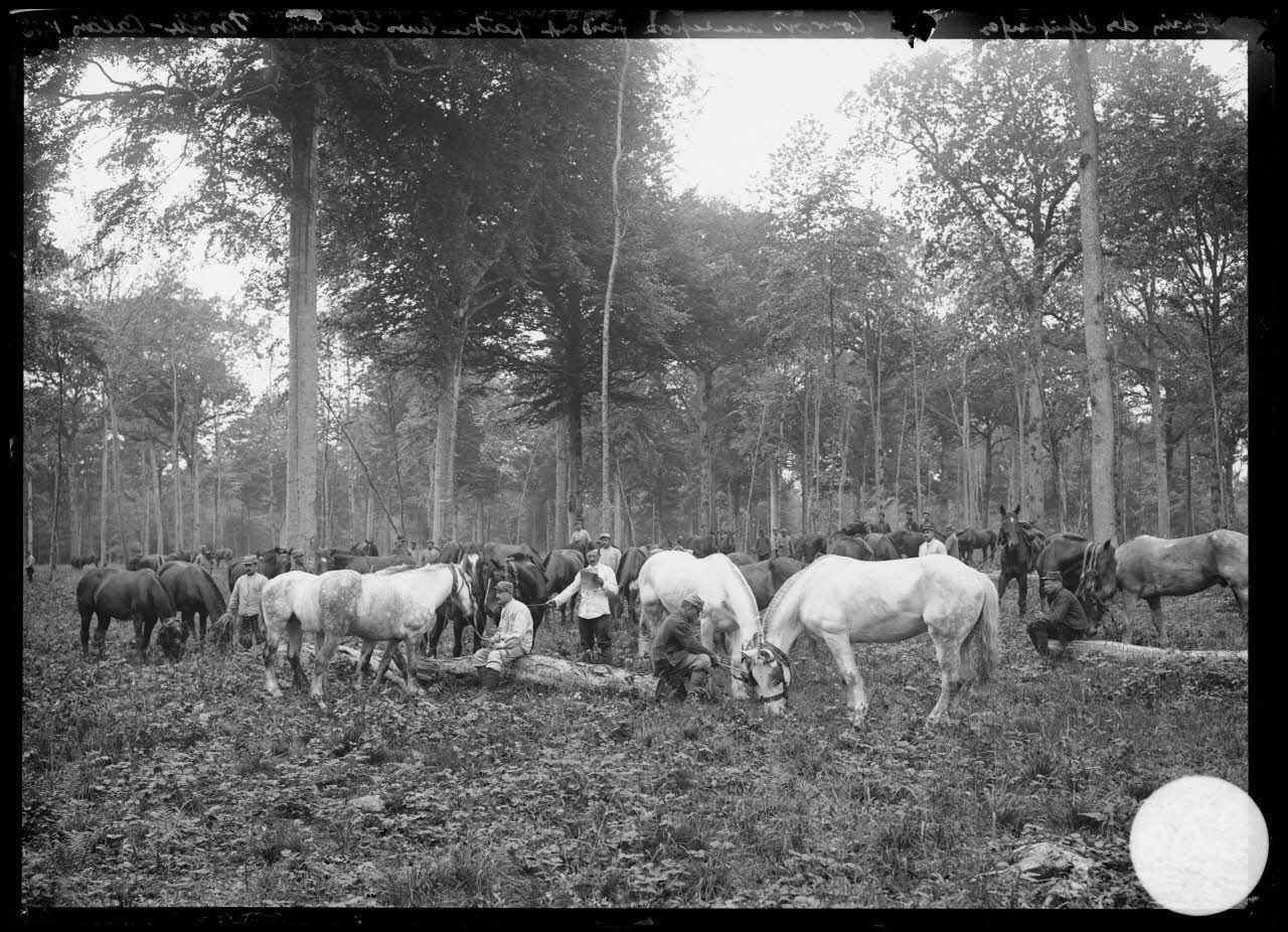 Train des équipages, convois au repos faisant paître leurs chevaux, Pas-de-Calais, 1916. [légende d'origine]