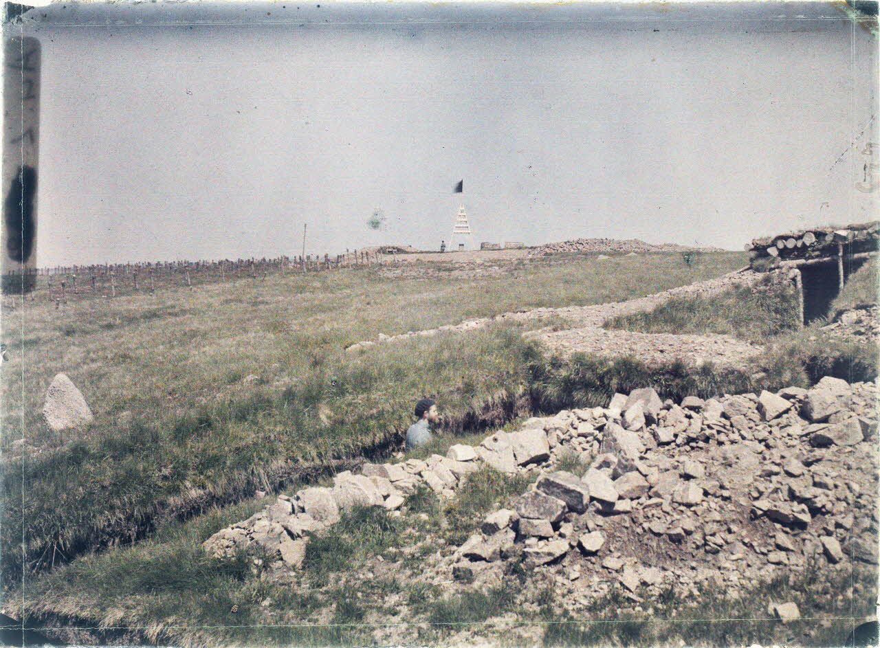 Vue actuellement non trouvée au MAK. En attente. La plaque porte un numéro 423 repéré par Ronan Guinée, du musée Albert-Kahn, lors de son expertise du 13/11/2015 ; ce numéro est à rapprocher de la série des numéros des plaques de Castelnau en Alsace. Mais le 423 du registre (=A 11960) correspond à une vue différente.