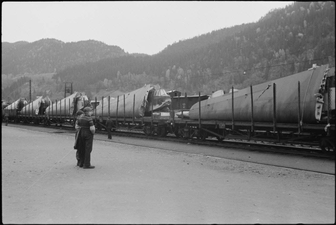 En Norvège, un train chargé de planeurs DFS-230 du 8./Luftlandegeschwader 1 (8./LLG1).