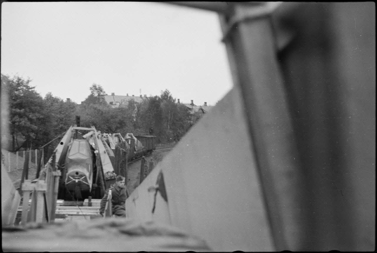 Notes : Le 8./LLG 1 est basé en Norvège de septembre au 6 novembre 1943. Selon les reportages du même photographe (Stocker), il n'est pas possible de savoir si les clichés illustrent le voyage vers Trondheim) ou vers un autre terrain d'aviation. En effet, les reportages photographiques qui suivent reviennent sur la présence de l'escadrille 8./LLG1 et les manœuvres autour de l'aérodrome.