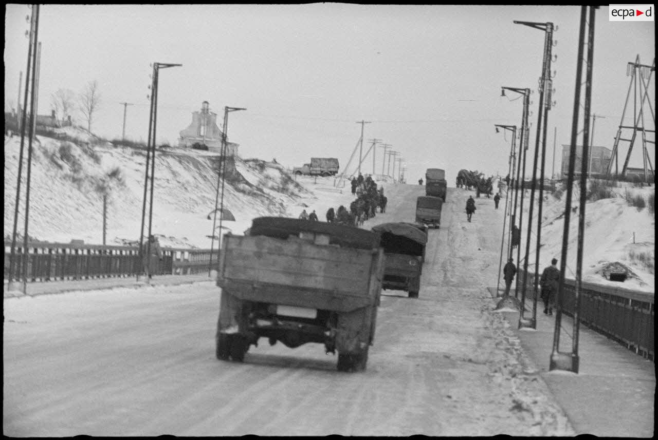 Circulation dans la gare de Vitebsk (Witebsk), ici une Peugeot Typ DK 5 au service de la Wehrmacht.