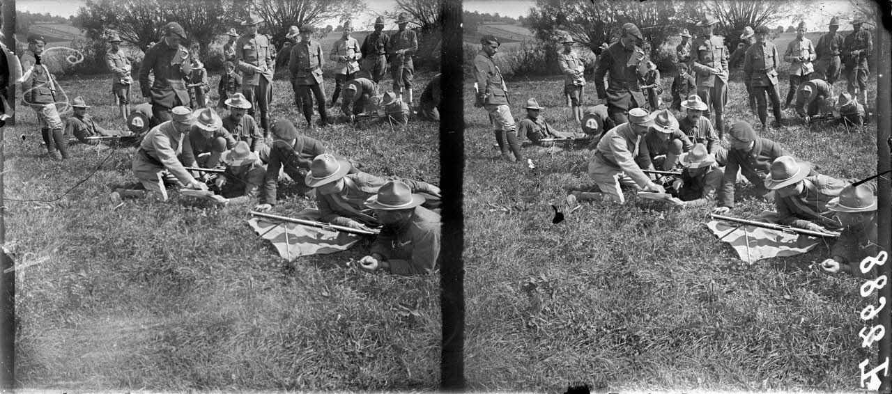 Note : la 1ère DIUS (1ère Division d'infanterie américaine "Big Red One) occupe le secteur de Gondrecourt-le-Château lors d'une période d'instruction. Les régiments américains sont formés par les 11e et 12e BCA (bataillon de chasseurs alpins), qui doivent enseigner les tactiques françaises et les principes de la guerre de tranchée. Voir film 14.18 A 216.