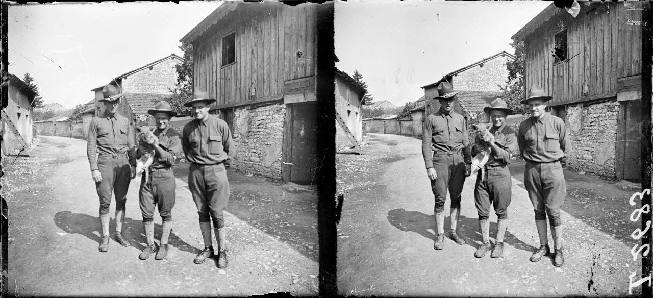 A Tréveray, des troupes américaines au repos après les manœuvres effectuées sous la direction des officiers français (SPA 57 L 2675/2676), un cours théorique sur le paquetage devant des soldats du 12e RC (régiment de chasseurs, SPA 57 L 2679), des soldats américains équipés de leur fusil (Springfield M1903) et des faisceaux de fusils français (Lebel 1886 M1893, SPA 57 L 2681), un détachement d'infanterie dans la rue (SPA 57 L 2682), trois soldats américains avec un lionceau, mascotte du 16e régiment d'infanterie américain de la 1re division d'infanterie, un cours d'instruction de tir au fusil mitrailleur Chauchat M 1915 (SPA 57 L 2686 à 2688), les instructeurs français et les soldats américains au repos (SPA 57 L 2689), un groupe de soldats avec les instructeurs rentrant au campement (SPA 2690/2691), le mess des officiers (SPA 57 L 2691), un portrait de groupe de soldats américains au campement (SPA 57 L 2711), la rue principale de Tréveray (SPA 57 L 2712), des soldats assis sur un banc public (SPA 57 L 2713/2714), des soldats américains à la porte d'un bazar vendant des articles militaires (SPA 57 L 2714), un détachement d'infanterie américaine traverse la ville (SPA 57 L 2717) ;