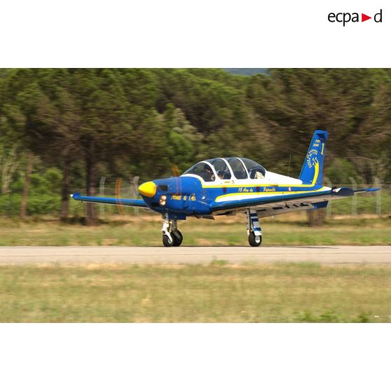 Lors du meeting aérien de l'ALAT au Luc en Provence, un avion d'entraînement Socata TB-30 Epsilon C/N 90 prêt à décoller.