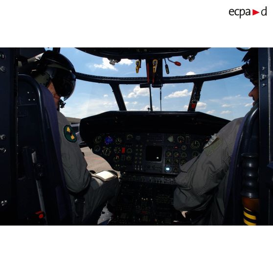 Lors du meeting aérien de l'ALAT au Luc en Provence, deux pilotes aux commandes du Super Puma SA-330 de l'armée de l'Air suisse.