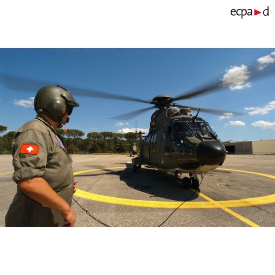 Lors du meeting aérien de l'ALAT au Luc en Provence, peu avant le décollage du Super Puma SA-330 de l'armé de l'air suisse.