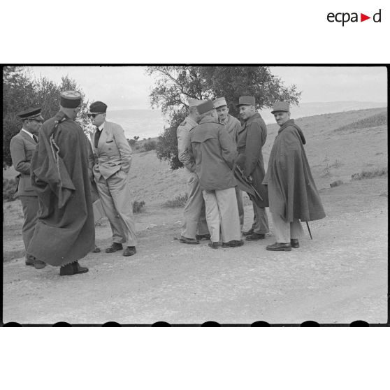 Un groupe d'officiers sur une route de la région de Mouzaïaville.