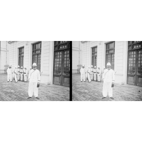 Troubles d'Annam. Avril 1908. Embarquement de la 1re cie du 1er régiment de t t à Hanoï, à destination de .1362. Les sous-officiers accompagnant leurs camarades.