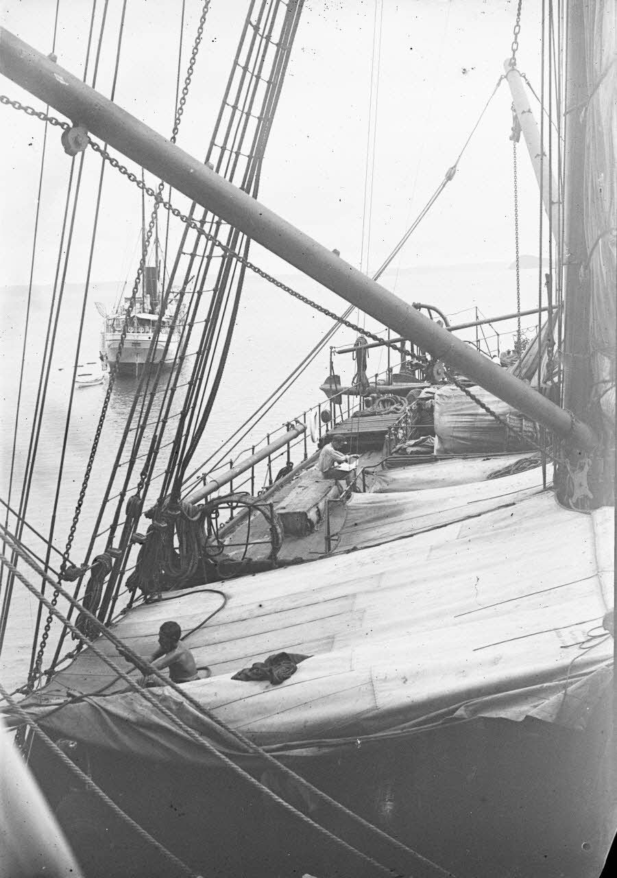 Edgard Imbert (1873-1915), sous-lieutenant de l'infanterie coloniale et photographe, quitte le port de Toulon à bord du navire L'Iraouaddy le 10 février 1900 pour se rendre à Madagascar. Il photographie les différentes étapes du trajet, dont une escale à Suez, les différents paysages marins et le quotidien à bord du navire.