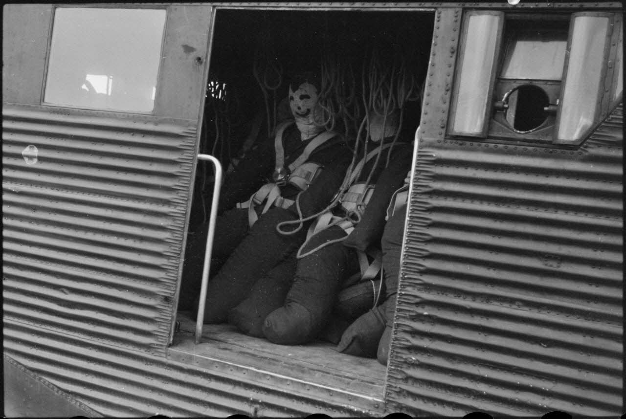 Sur le terrain d'aviation de Banak occupé par le 8./LLG 1 (Lulftlandegeschwader 1), un adjudant (Feldwebel) vérifie le paquetage des équipages de Stuka ou de planeurs DFS-230.