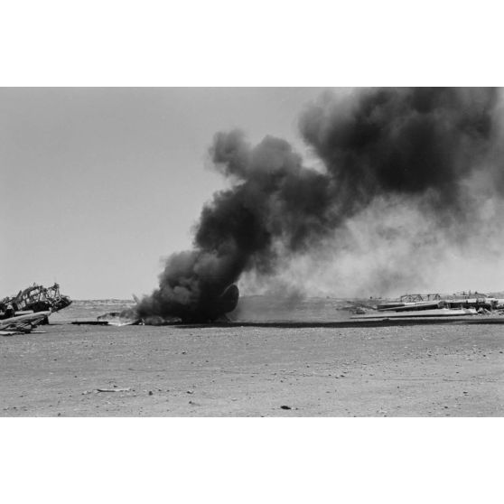 Résultats d'une attaque aérienne britannique sur un terrain d'aviation.