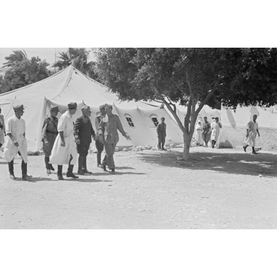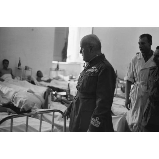 A Derna, la visite de Benito Mussolini dans un hôpital militaire italien.