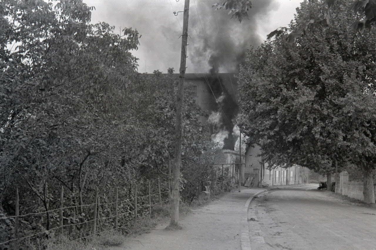 Un bâtiment brûle.