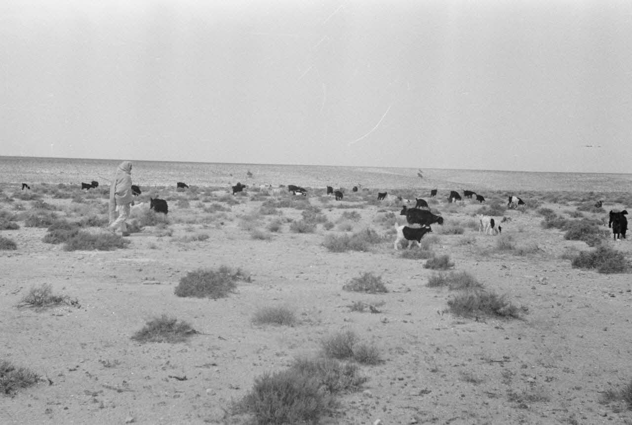 Les tentes des bédouins à peine visibles dans le paysage désertique libyen.