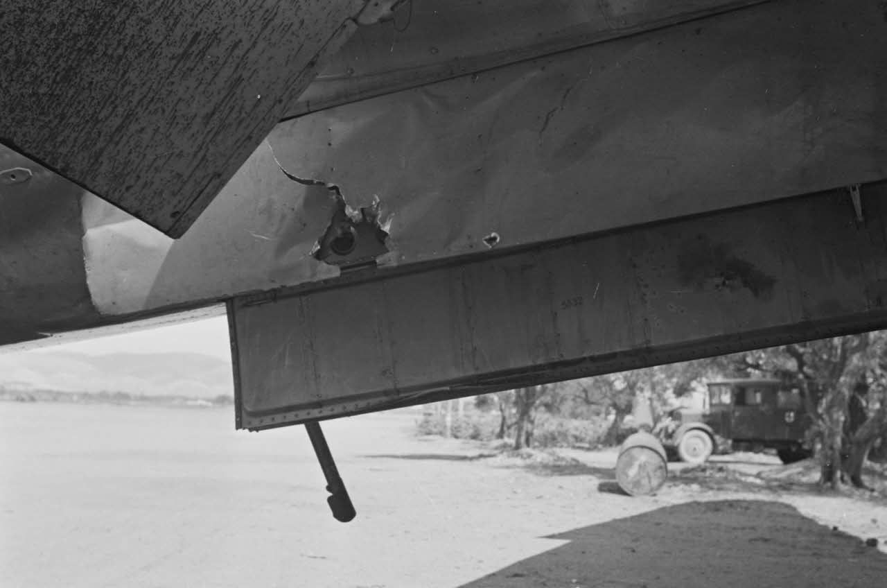 Un bombardier Junkers Ju-88 du Aufklärungsgruppe 123 endommagé lors d'une mission de reconnaissance au-dessus de la méditerrannée.