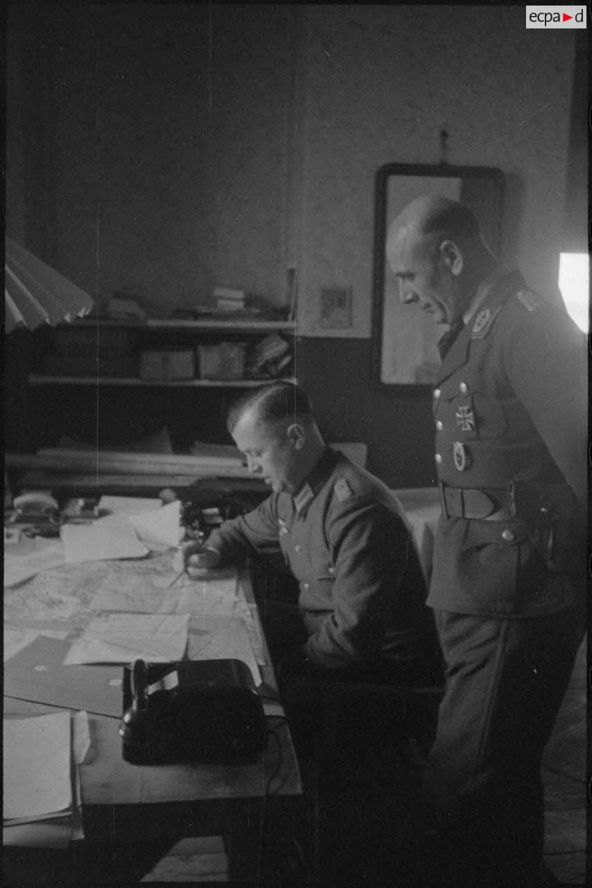 Un briefing dans un bureau, deux colonels se concentrent sur une carte.