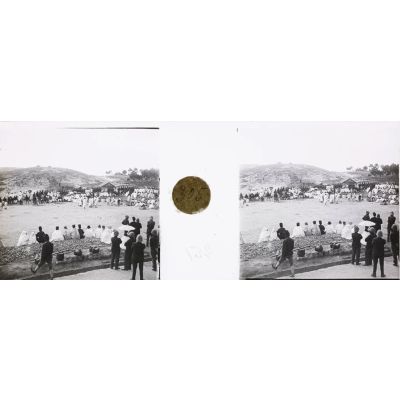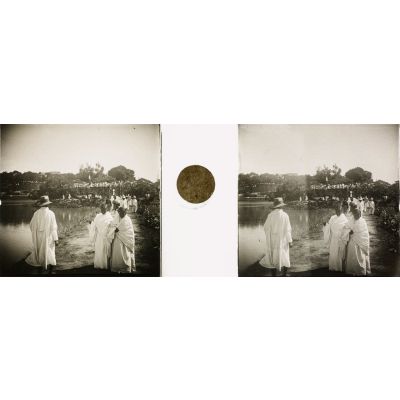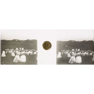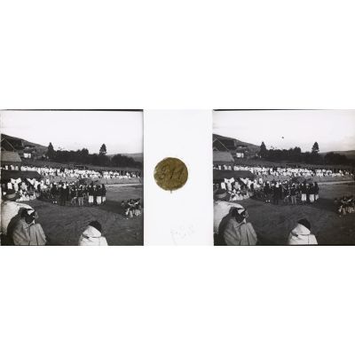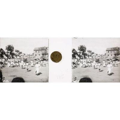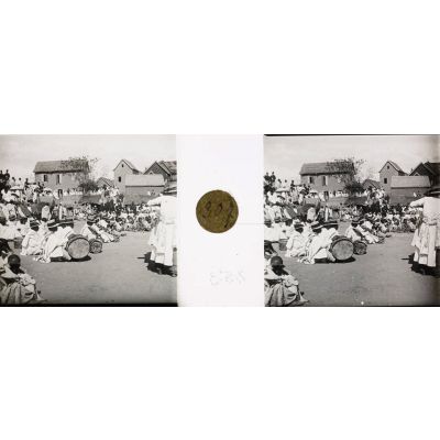 D68-29. Le terme malgache "kabary" désigne à l'origine un discours prononcé par le roi lors d'une assemblée consacrée à la discussion des affaires publiques et, par extension, toute fête traditionnelle publique. René Denis photographie le kabary qui a lieu, après la prise d'armes du 14 juillet 1908, sur l'île du lac Anosy. Une autre de ces réunions se tient à Manjakandriana, à 30 km à l'est de la capitale, où se produisent les musiciens de l'orchestre local, des chanteurs, des conteurs.
