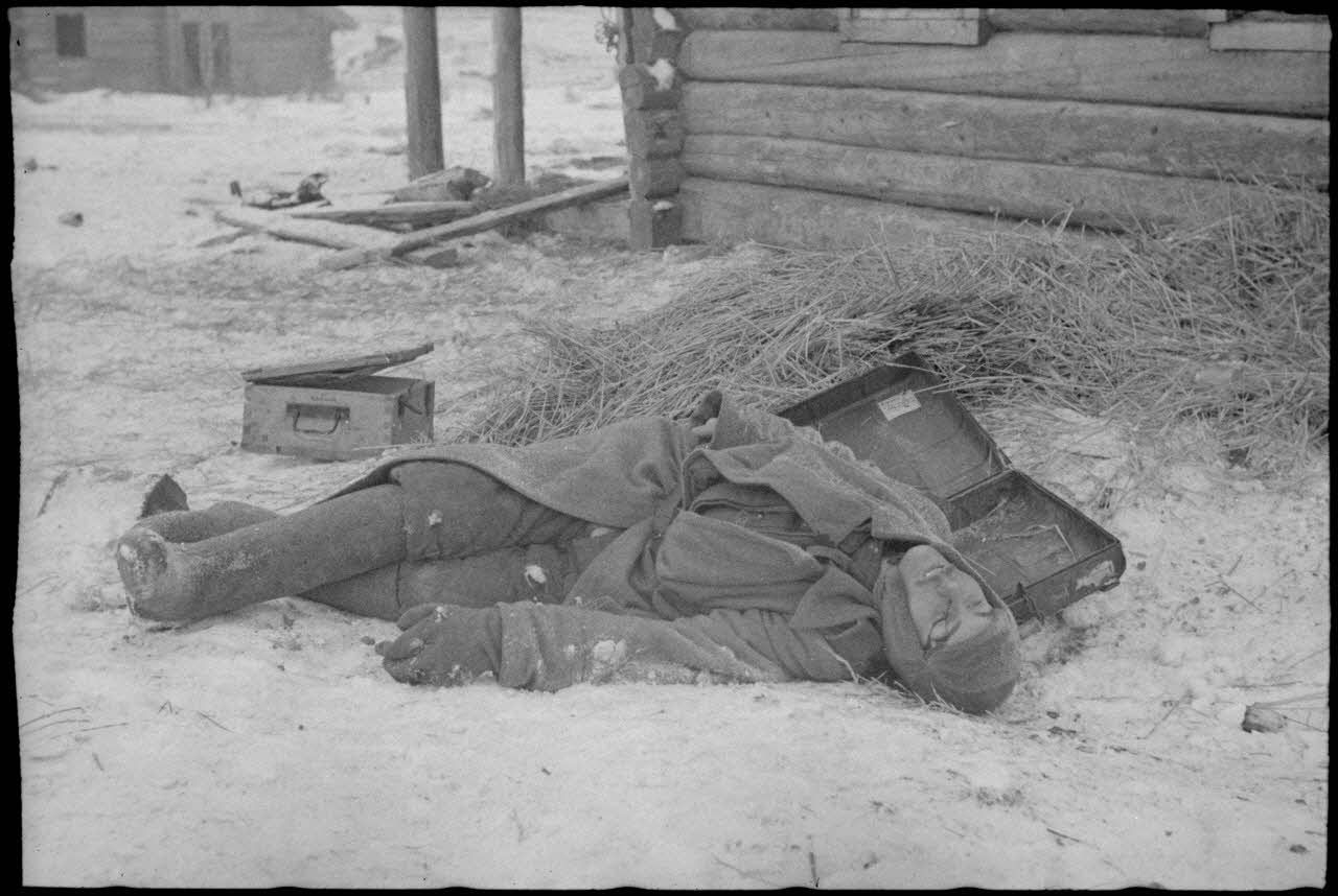 Un cadavre de soldat soviétique durant la bataille de Witebsk.