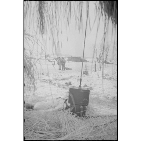 Durant la bataille de Witebsk, un radio allemand est mort au combat, deux fantassins viennent récuperer son corps.