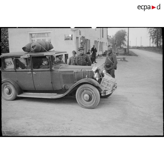 A un poste frontière, un douanier belge et un soldat français contrôlent le passage des automobiles conduites par des réfugiés. Un caméraman filme les deux hommes. Un camion Berliet GDRA 7 de réquisition (appartenant à un groupe de transport du train) entre en Belgique sous l'oeil d'un gendarme outre-Quiévrain.