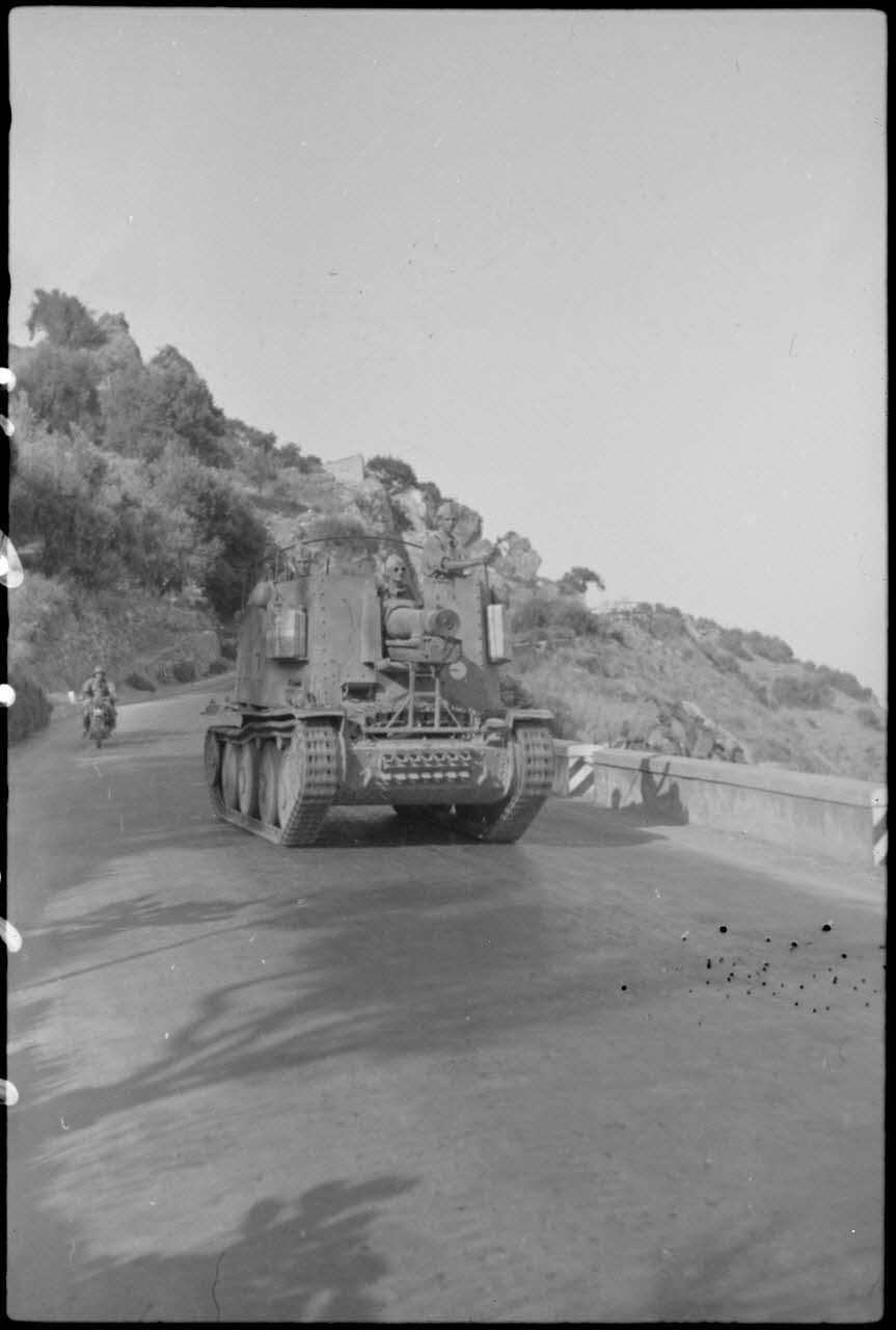 Dans le secteur de Taormina, la progression de blindés de la 9.Infanteriegeschützkompanie de la Panzer-Grenadier-Regiment Hermann Goering.