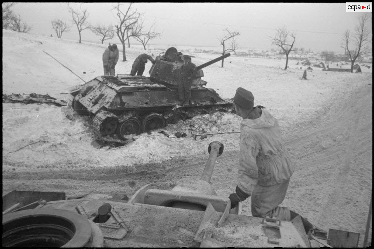 Un char T-34 suscite l'intérêt des soldats allemands.