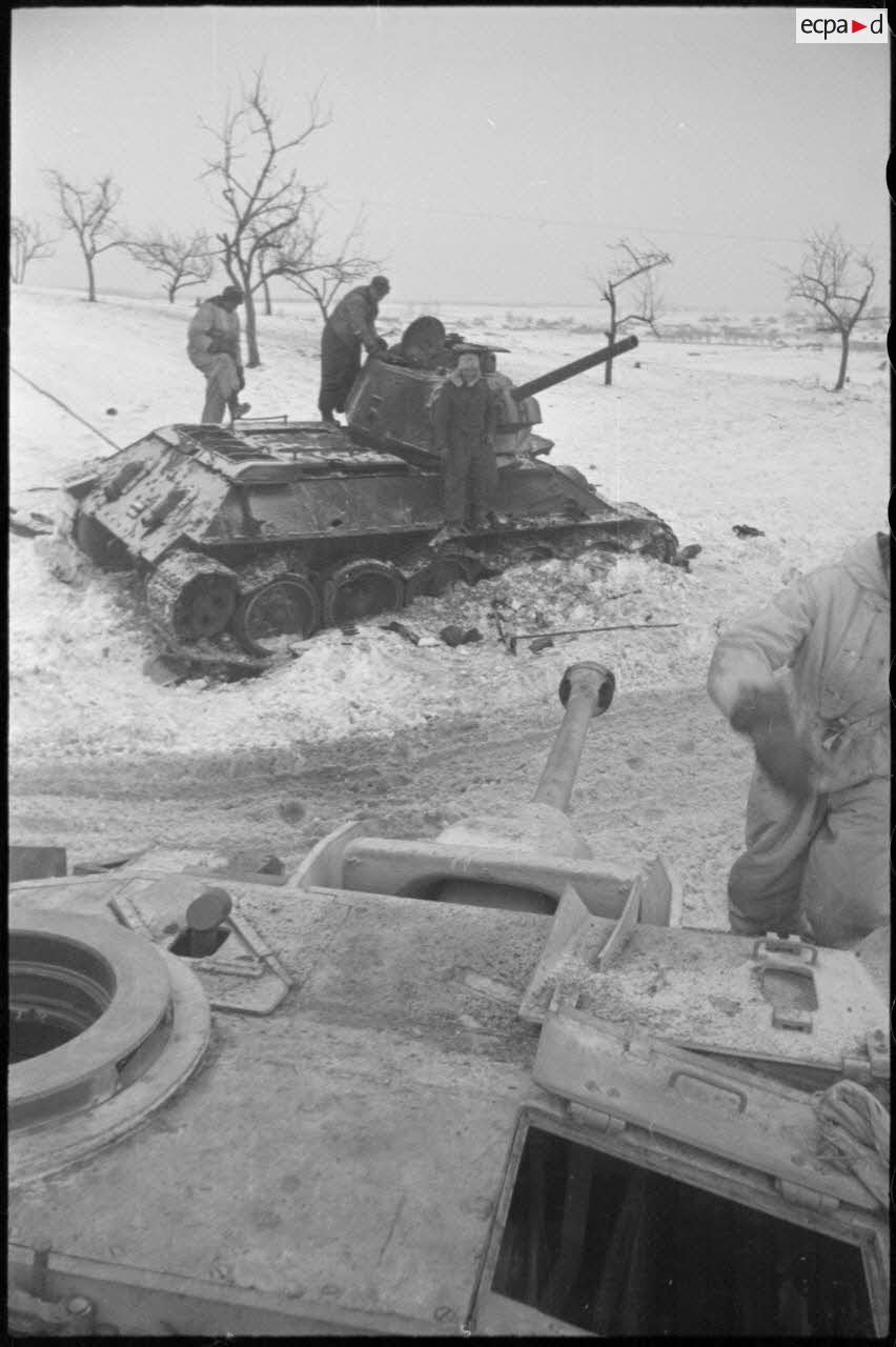 Un char T-34 suscite l'intérêt des soldats allemands.