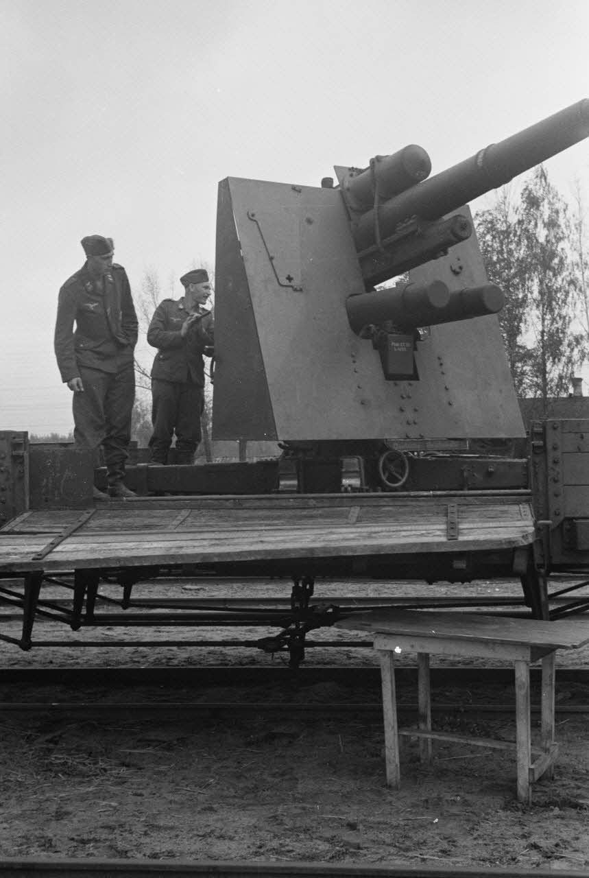 Pour lutter contre la résistance locale, un blindé Panzer-III et un canon de DCA de 8,8 cm FlaK ont été installés sur des wagons.