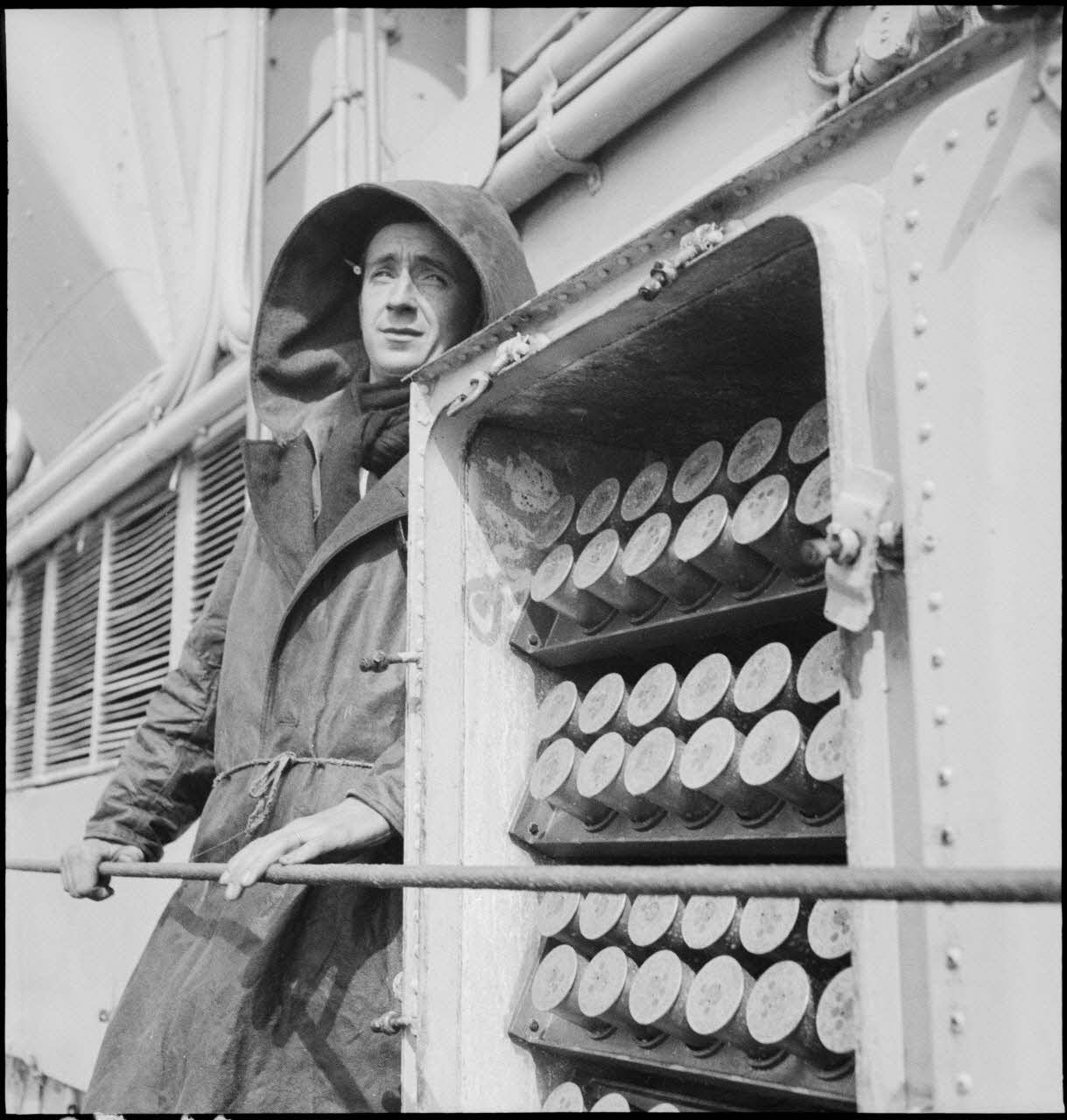 Portrait d'un marin canonnier de guet à bord du contre-torpilleur Le Malin.