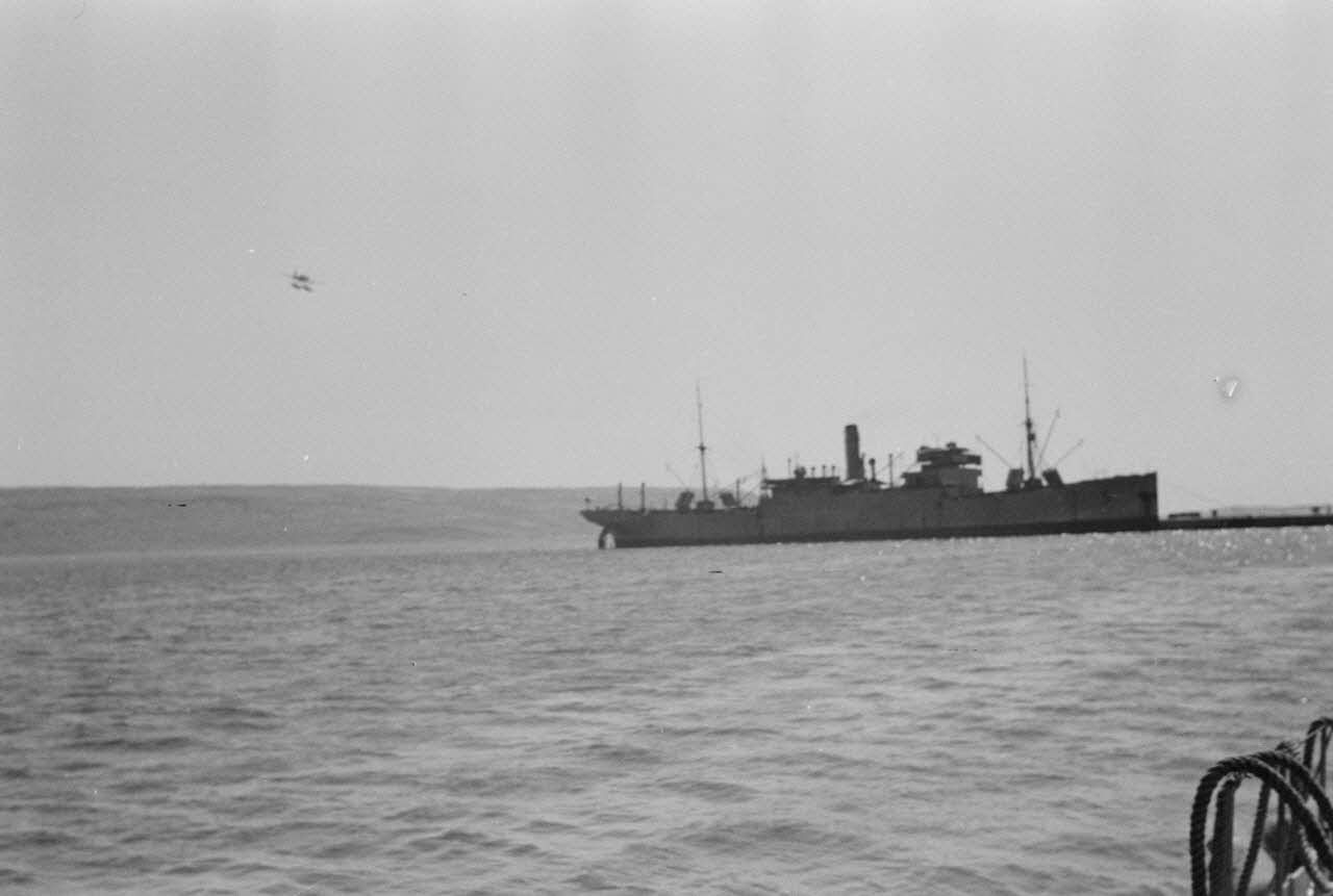 Un cargo de l'Axe amarré dans un port crétois occupé.