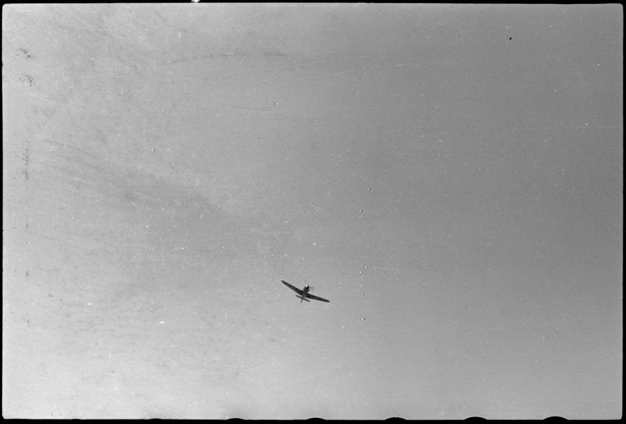 Enfin, deux chasseurs Messerschmitt Me-109 touchent le sol du terrain d'aviation. Ces avions constituaient peut-être l'escorte des remorqueurs durant l'exercice.