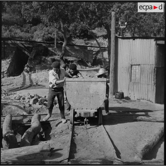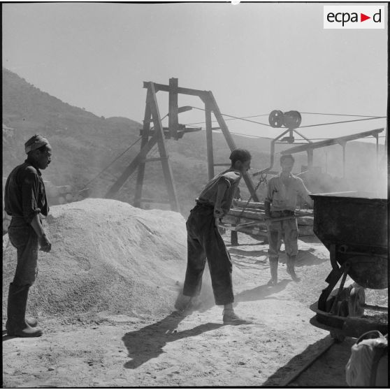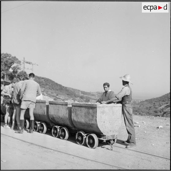 Un contremaître et ses ouvriers à la mine d'El Alia.