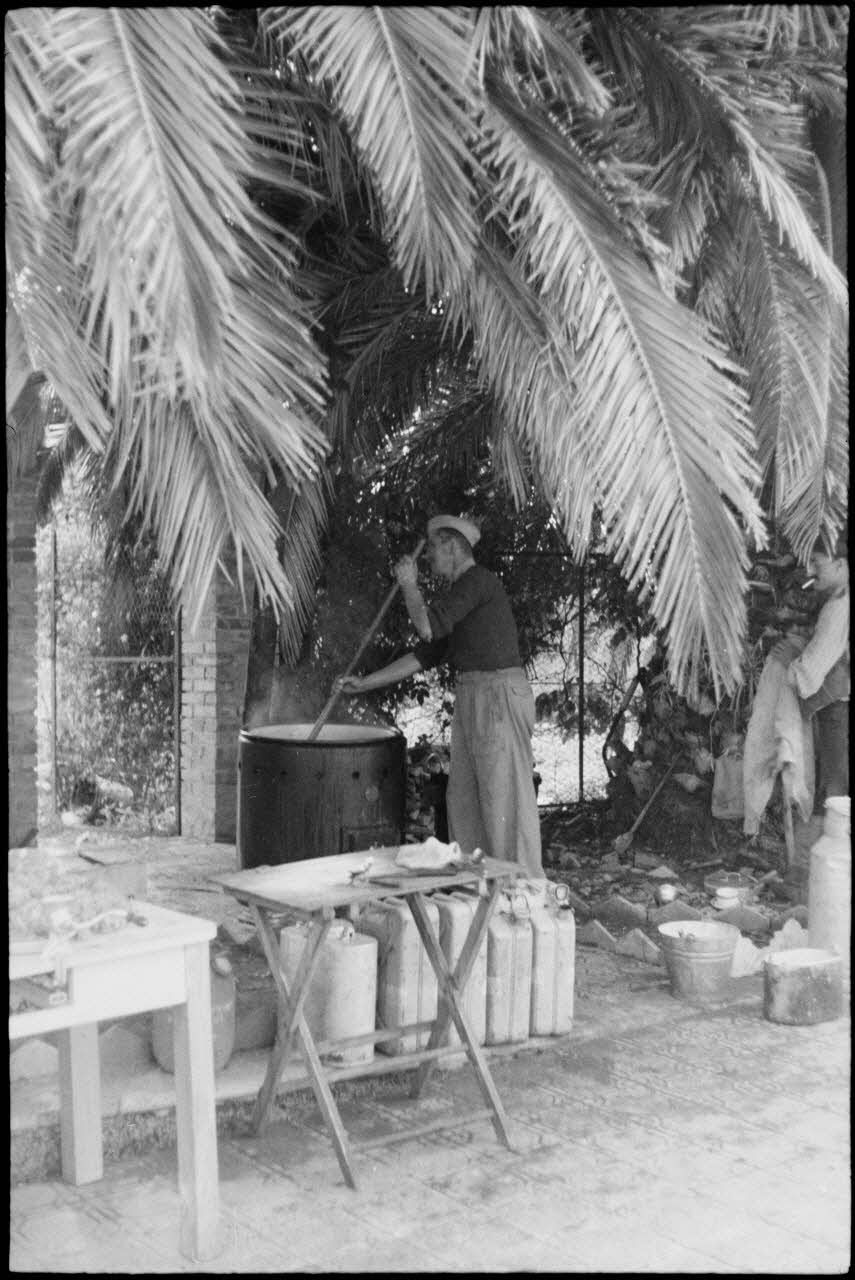Un cuisinier de la 3e batterie du FlaK-Regiment 23 réchauffe un repas pour son unité.