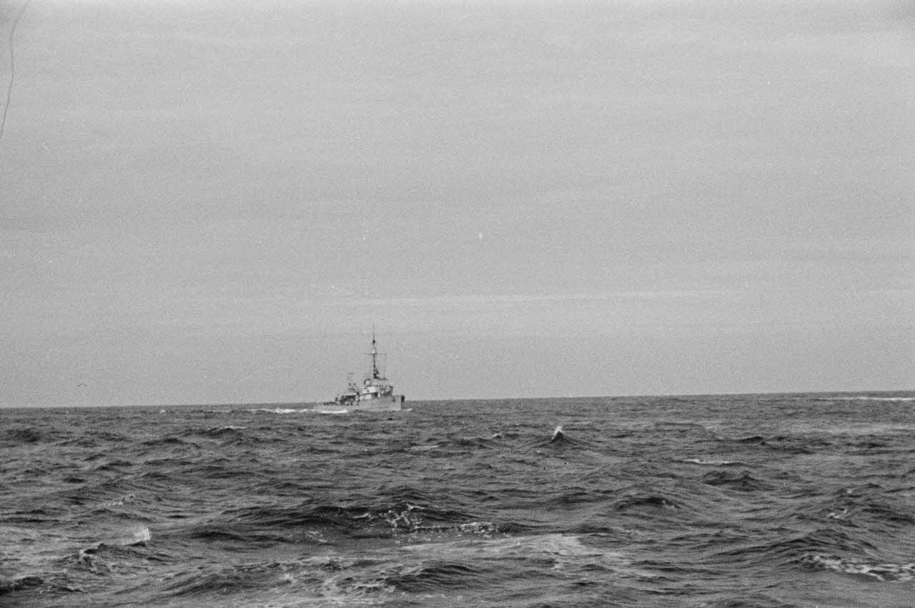 Note : A défaut de légende d'origine, l'ECPAD conserve pour le reporter Kramer un titre d'origine et le numéro de la compagnie dans laquelle évolue le reporter : la 5e demi-compagnie de reporters de guerre de la marine allemande (5 Marine Kriegsberichter-Halbkompanie). Ces informations tapées à la machine et agrafées au début de la pellicule photographique ne mentionnent pas la date ni le lieu du reportage. Le journal de marche de l'unité de propagande (Marine Propaganda-Abteilung West) est disponible aux archives du NARA de Washington (référence : NARA National Microcopy T-77 Roll 1021 Kriegsmarine 269). Pour la période concernée, on trouve la date exacte ainsi que le titre du reportage : 12-24.10 BB Kramer : Bordeinsatz auf einem Minensuchboot.