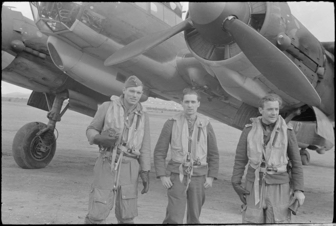 Un équipage de bombardier Junkers Ju-88 devant son appareil, il pourrait s'agir du terrain d'aviation de Eleusis.
